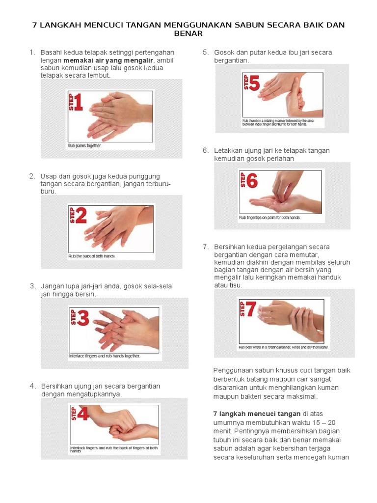 Berikut ini 7 langkah cuci tangan yang efektif : Dengan cuci tangan yang benar bisa mencegah penyakit dan menjaga kebersihan badan washing hands is healthy behavior. Ikuti 7 langkah mencuci tangan yang benar menurut who untuk mencegah. Scara singkat inti dari gambar di atas adalah mencuci tangan dgn 7 langkah metode ini biasa di pakai oleh dokter2 sblm melakukan pemeriksaan kepada pasien dgn mencuci tangan dgn metode 7 langkah ini bisa d. Cuci tangan adalah perilaku hidup sehat. Lagu 7 langkah cuci tangan. Tuangkan cairan sabun cuci tangan secukupnya di telapak tangan. Dengan catatan, cuci tangan dilakukan di saat dan waktu yang tepat. Jangan lupa cuci tangan dengan sabun supaya kumannya hilang! Untuk memastikan tangan anda sentiasa bersih dari kuman dan kotoran, amalkan membasuh tangan dengan betul menggunakan air dan sabun Poster 7 langkah cuci tangan puskesmas tanjung sataifull description. 13 737 просмотров 13 тыс. Kami dari bethsaida hospitals mempersembahkan kepada anda semua 6 langkah cara mencuci tangan dengan benar!