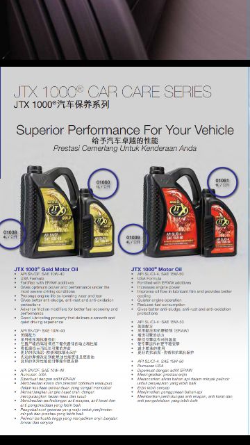 Jtx1000 adalah minyak pelinciran sedia pakai dari siri produk automobil jtx di shom.