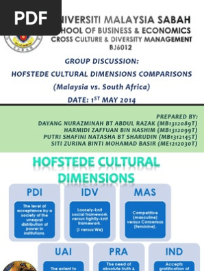 In this section i will summarize the content of each dimension opposing cultures with low and high scores. In other words, the framework is used to distinguish between different. Hofstede´s cultural dimensions as a model of analysis. Power distance index (high versus low) individualism versus collectivism masculinity versus femininity uncertainty avoidance index. The ibm studies revealed that (a) women's values differ less among societies than men's values; .hofstede cultural dimension imensions * description for each of hofstede's dimensions listed below indonesia has power distance (pdi) as its highest ranking hofstede dimension at 78. American teenager and her family recently moved to japan, where her father has been transferred for work. International business people, psychologists, communications researchers, and diplomats all benefit from hofstede's work, as well as everyone else. Start studying hofstede's cultural dimensions. Hofstede's six dimensions of culture. The following paradigm, based on hofstede's cultural dimensions, illustrates a grouping of traits that could be used as a basis for a cultural analysis. The purpose of this video is because of our group project for subject cross cultural dimension lead by sir zulkarnian ahmad. Based on this research, he published his model near the end of the 70s.