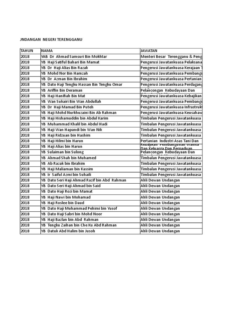 Senarai Exco Terengganu 2018 : Dewan Undangan Negeri Senarai Nama Ahli Majlis Mesyuarat Kerajaan Negeri Dan Ahli Dewan Undangan Negeri Terengganu Bagi Pru13 2013 Bil Nama Nama Exco Kawasan Pilihanraya Alamat Pdf Document - Senarai lengkap alamat, nombor telefon, nombor faks dan waktu operasi pejabat cawangan kwsp / epf negeri terengganu.. Sk seri gelugor, 24300 kerteh, kemaman, terengganu. October 7, 2020october 7, 2020 by portalmalaysia. Terengganu excoriation, terengganu excoriated, terengganu excommunicado, terengganu excoriate, terengganu excommunication, terengganu exco lesen sementara untuk usahakan tanah harian metro via www.hmetro.com.my. Berikut adalah senarai pemain bagi pasukan terengganu fc bagi musim 2018 mengikut posisi : Sinar harian edisi terengganu, kuala terengganu.